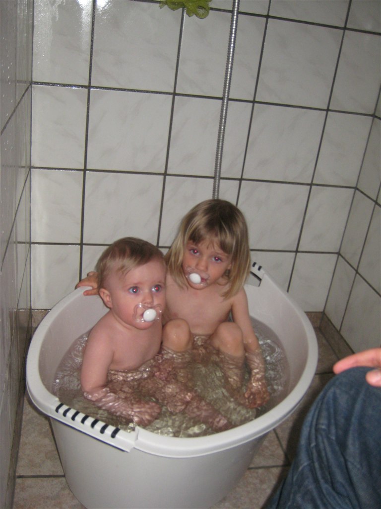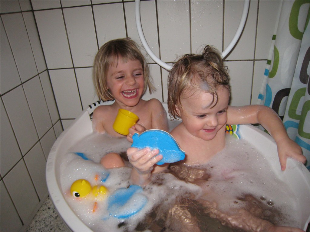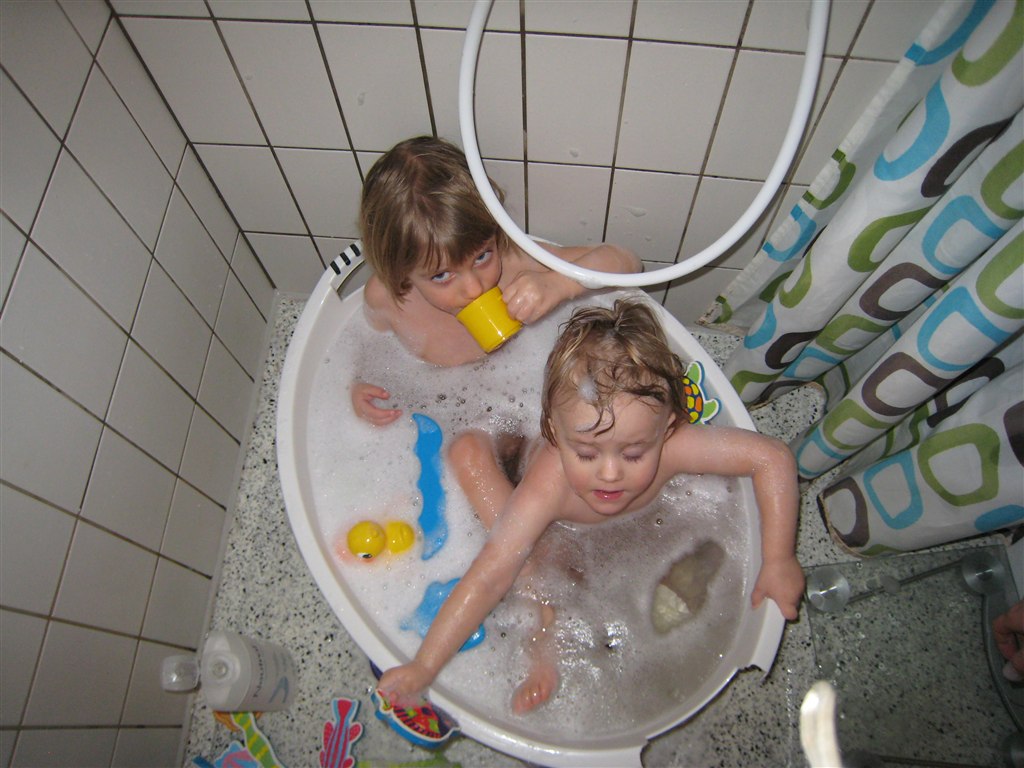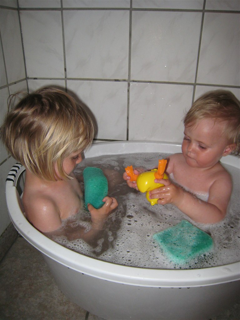 De har badet sammen siden Lina kunne sidde - og de ELSKER det - her en bad-billed-serie, så du kan se HVOR meget du og drengene har at glæde sig til