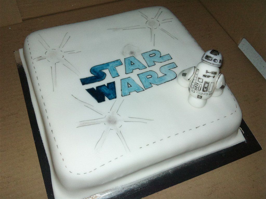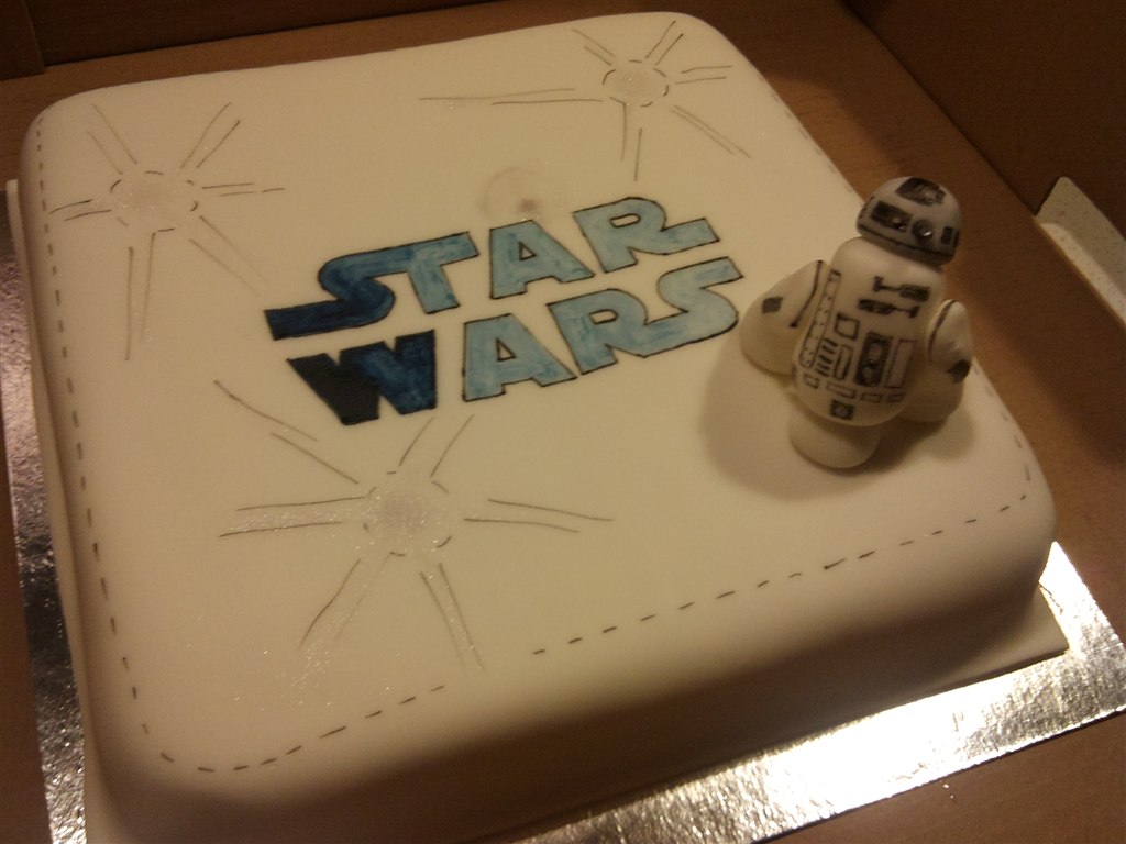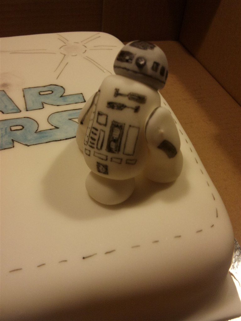 Min gode klassekammerats søn fylder år i dag, og han er vild med Star Wars, så jeg havde lovet en kage med Darth Wader på, men da jeg skulle lave ham i aftes, ville det bare ikke, det jeg ville. Så i morges lavede jeg en R2D2 i stedet for, så her får I resultatet