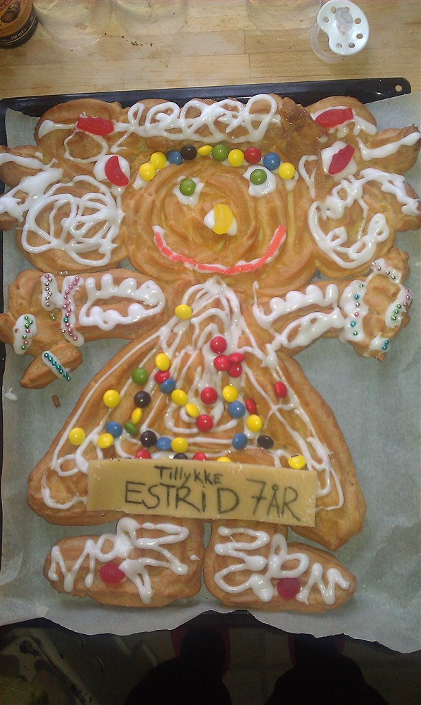 Så havde Iduns bedste veninde fødselsdag og Idun og jeg aftalte at lave en kagekone til hende i fødselsdagsgave. Lidt satset til en der bliver 7 år, men hun blev glad for den