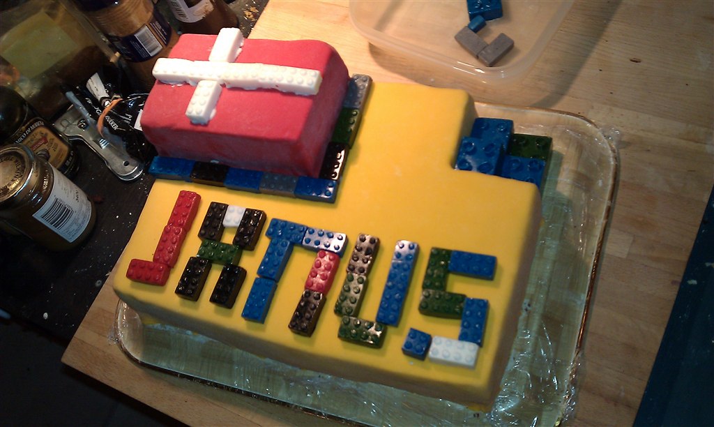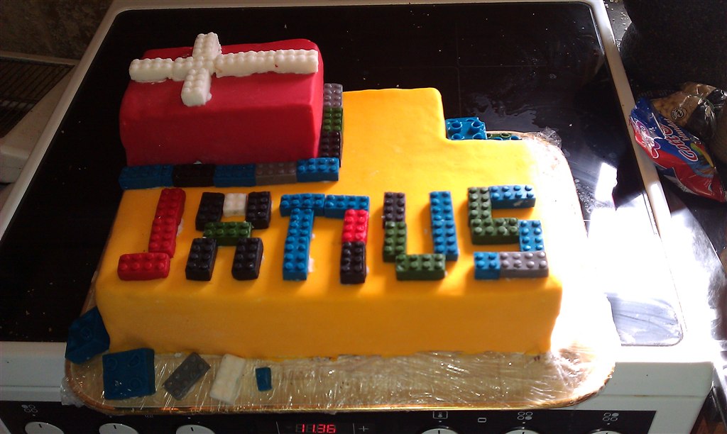 Jeg havde en bestilling til idag, på en lego kage til Toms kollegas søn. Så den blev lige færdig igår aftes