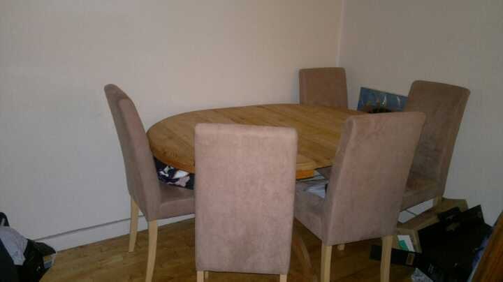 Rundt spisebord med 6 stole og 1 plade til at sætte på