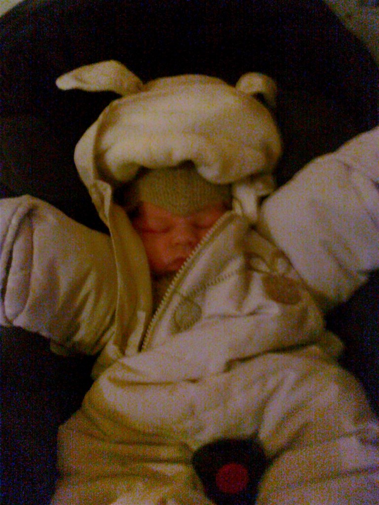 Vi havde en 4 timer gammel Bimmer med hjem i autostolen! Men det er dælme ikke nemt at spænde en "babyklump" fast