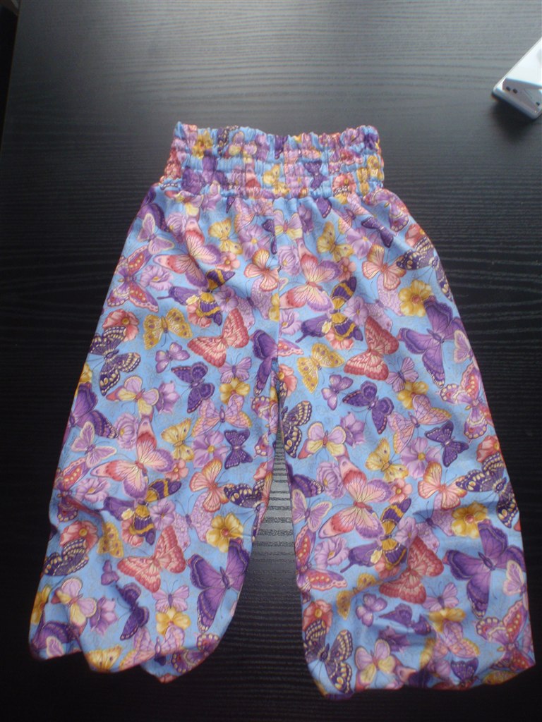 Ej, jeg slaper helt af når jeg sidder med det... Hvis "de" bukser du omtaler er ballonbukserne, så nej, de er ikke svære. Jeg kan klart råde at købe Minikrea's mønster til ballonbukser, det er super nemt at finde ud af det, og når man har lavet easy modellen og er mere sikker har de nogen forskellige varitioner som man kan sy i stedet. Feks. Har jeg lavet de sorte i babyfløjl, altså den med dragen. Og ligeså dem til Lilje. De er easy modellen, fordi der kun er rib i linningen. En ny udfordring er så at lave en linning i samme stof (de sorte med sommerfugle, og de blå med sommerfugle) hvor du syer løbegange til elastik, så det er en elastik linning. Der er så mange fine variationer, og jeg elsker deres mønster.