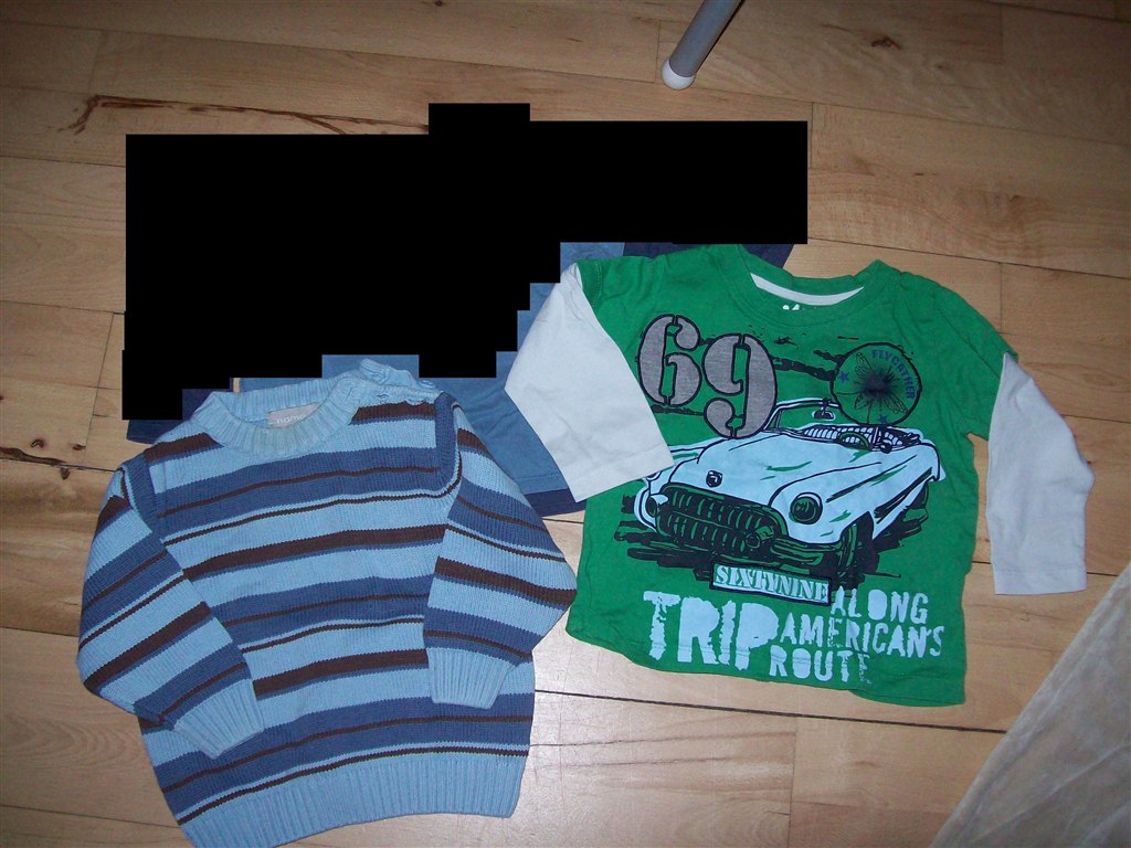 Str: 86. Fin strikbluse + bluse med bil - begge i fin stand.