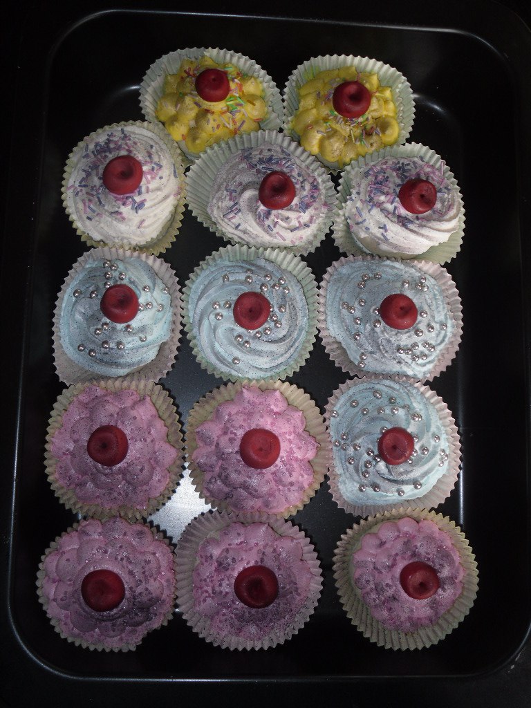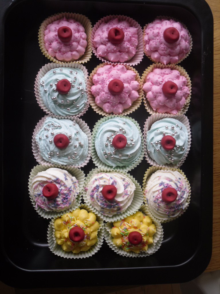 Så blev jeg færdig med kager til filmsættet på en kortfilm. De skulle være pastel/børne kager som ikke skulle være helt perfekte og lidt "uhyggelige"