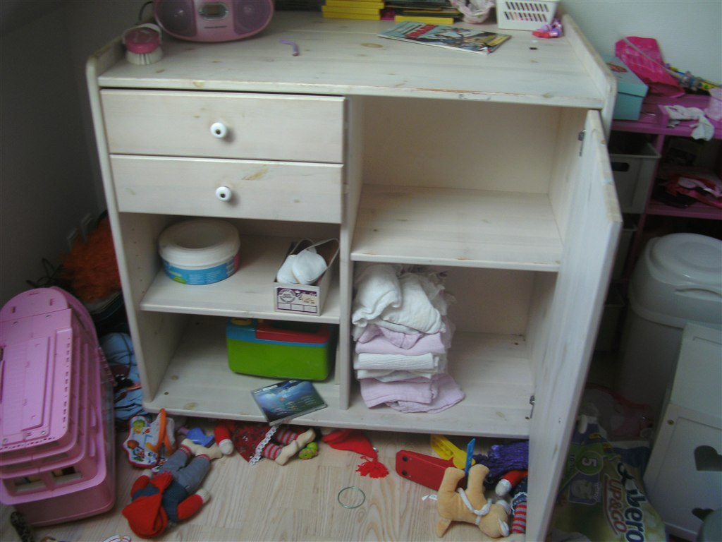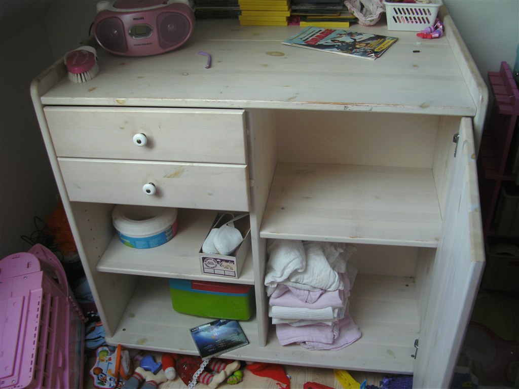 jeg står her med mit puslebord jeg ikke skal bruge mere, og det fylder lige der hvor min datters nye skab skal stå.