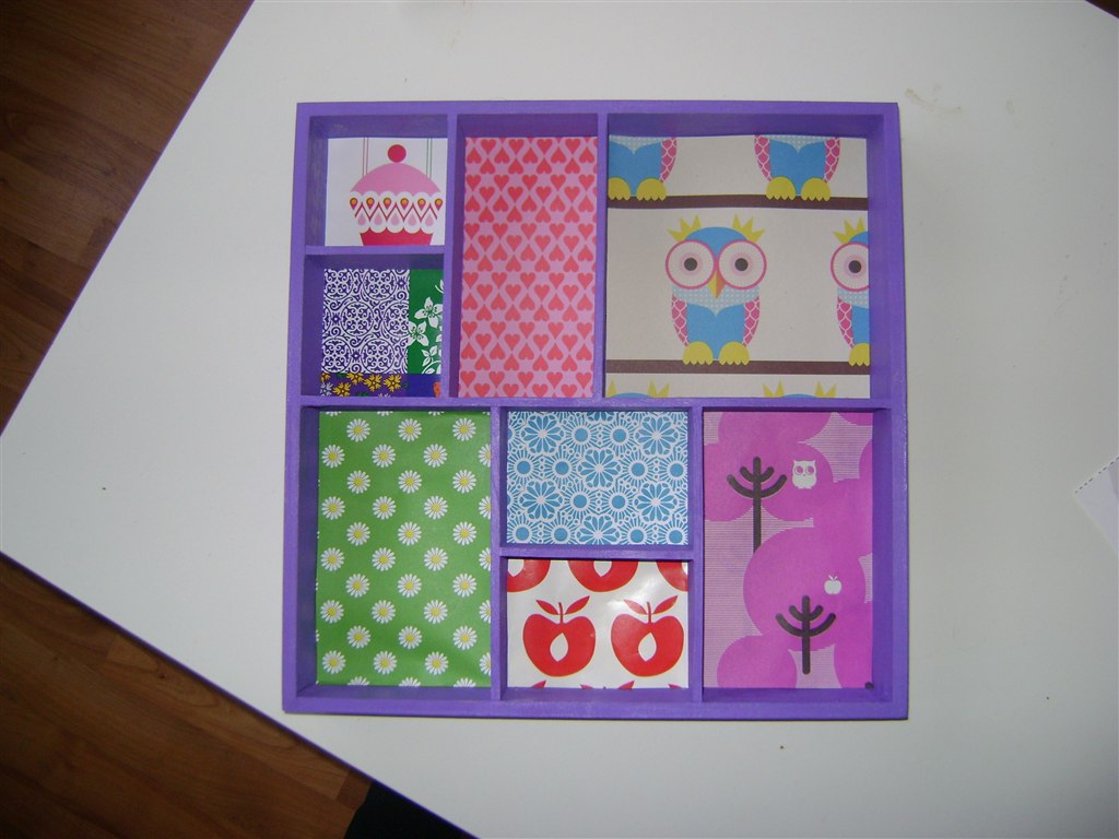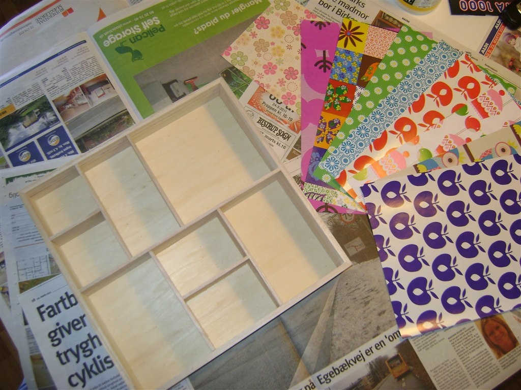 Det er meget, meget nemt.. Sætterkassen er købt for 49.- i søsterne og papiret er fra www.papirogtapet.dk