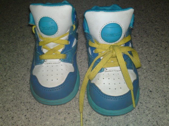 Et par fine Reebok sko, sidder godt på foden, er piv lyd i flapen foran når man trykker på den