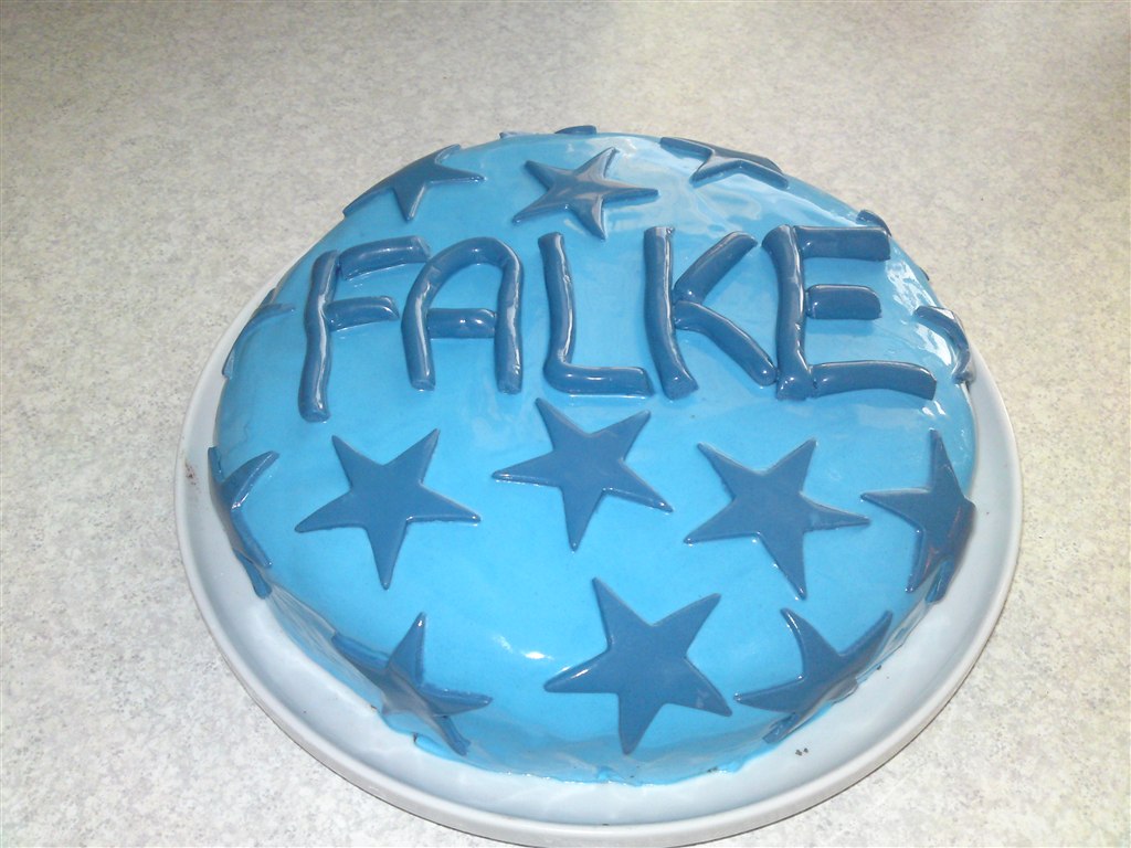 Falke har bestilt kage med hans navn på til i aften så lavede lige sådan en mens drengene sov formiddagslur Mmmm glæder mig til at sætte tænderne i den. hehe Hvis jeg får lov