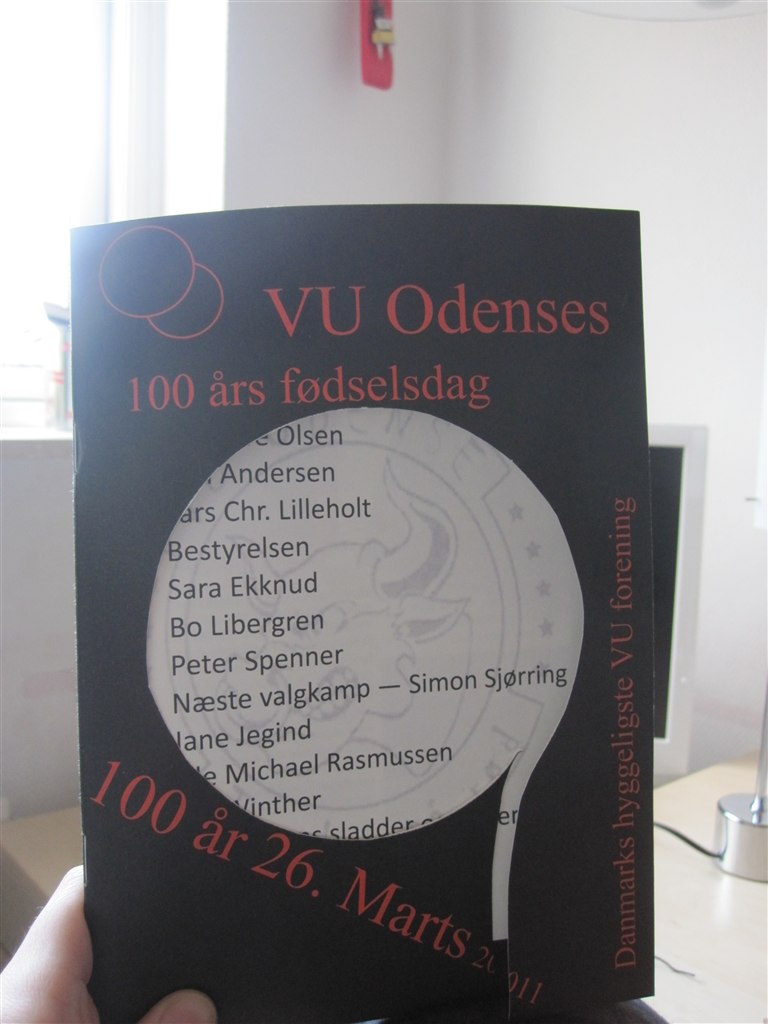 Valkyrien skriver: Min absolut hurtigste kage ever! Kagen til VU Odense's 100 års jubilæum er endelig færdig! Begyndte kl.08:00 i morges med at handle ind og her for en time siden blev jeg færdig med den. Ikke den pæneste kage jeg har lavet, men det skulle gå hurtigt, og alt drillede bare Men håber da de bliver glade! Det er Bondekonens chokoladekage smurt op med islandsk smørcreme.
