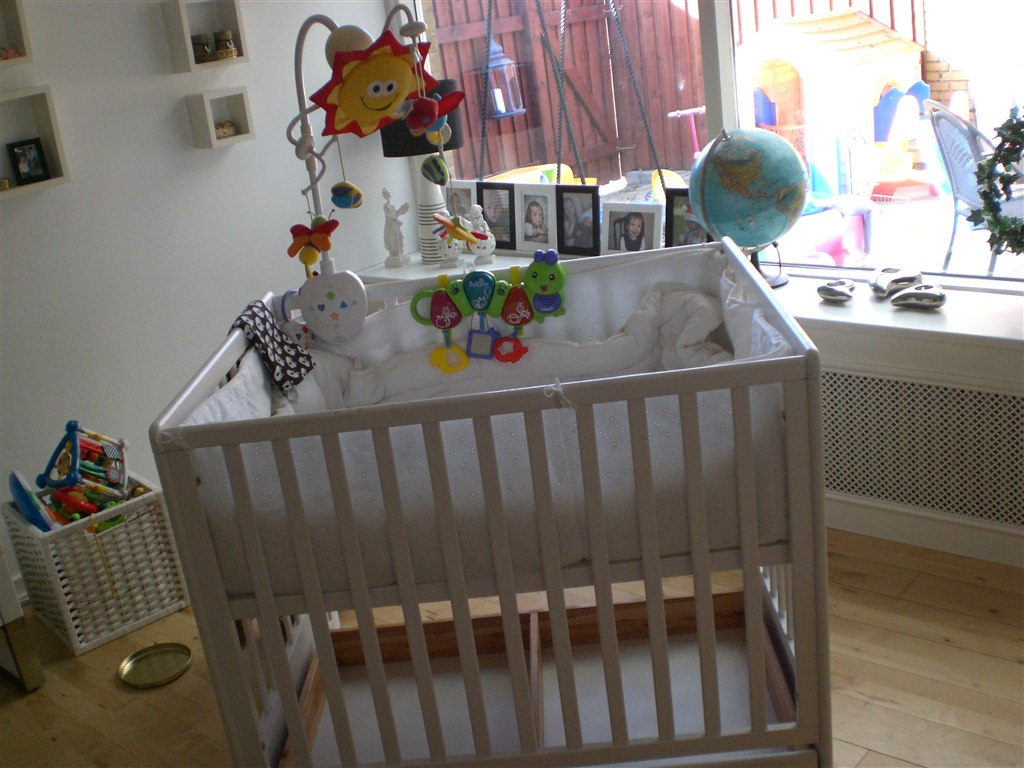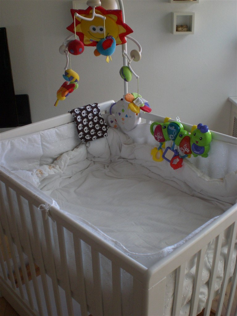 Tæppe fra Babydan med striber på den ene side, og bamser på den anden, vildt sødt. (nypris 599) og sengerand fra Broderi Anglaise (nypris 499) medfølger. Randen er til seng, men jeg syntes det var pænest med en rand omkring og det kan man ikke få i dette mærke...