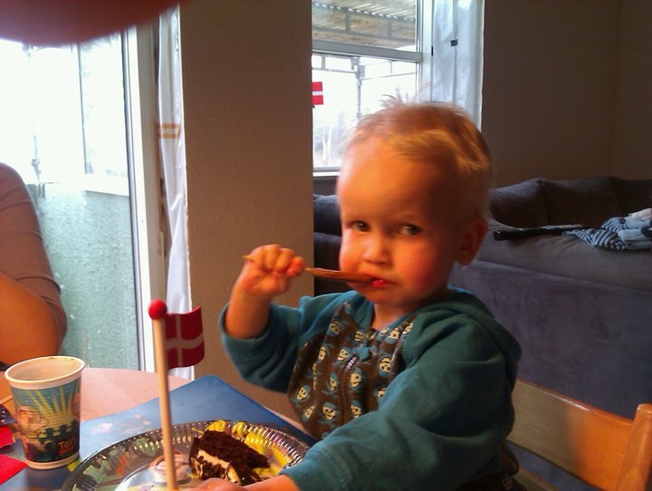 hc=k skriver: I dag blev Kristopher 2 år og det var både med slik og kage... Og flag hehe