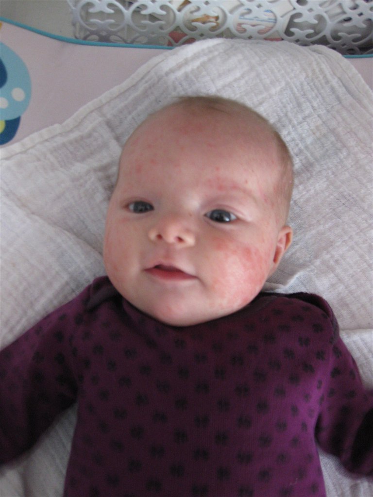 Hej piger.. Min 6 uger gamle datter har fået knopperi hele ansigtet og de bliver røde nogle gange,det startede med lidt, men har så bredt sig..De er også lidt på halsen og hovedbunden..Hvad kan det være, hvad kan/skal jeg gøre?Burde jeg ringe til lægen?