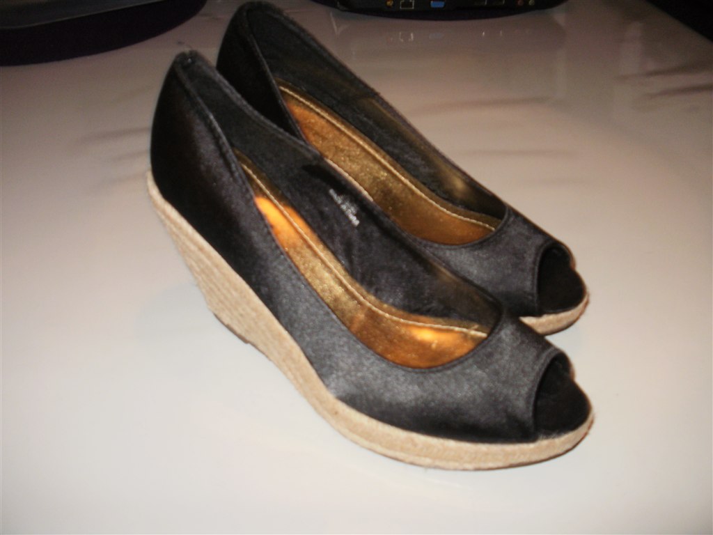 24/ H&M sort satin kilehæl str 38 - NY, brugt 1 gang SOLGT