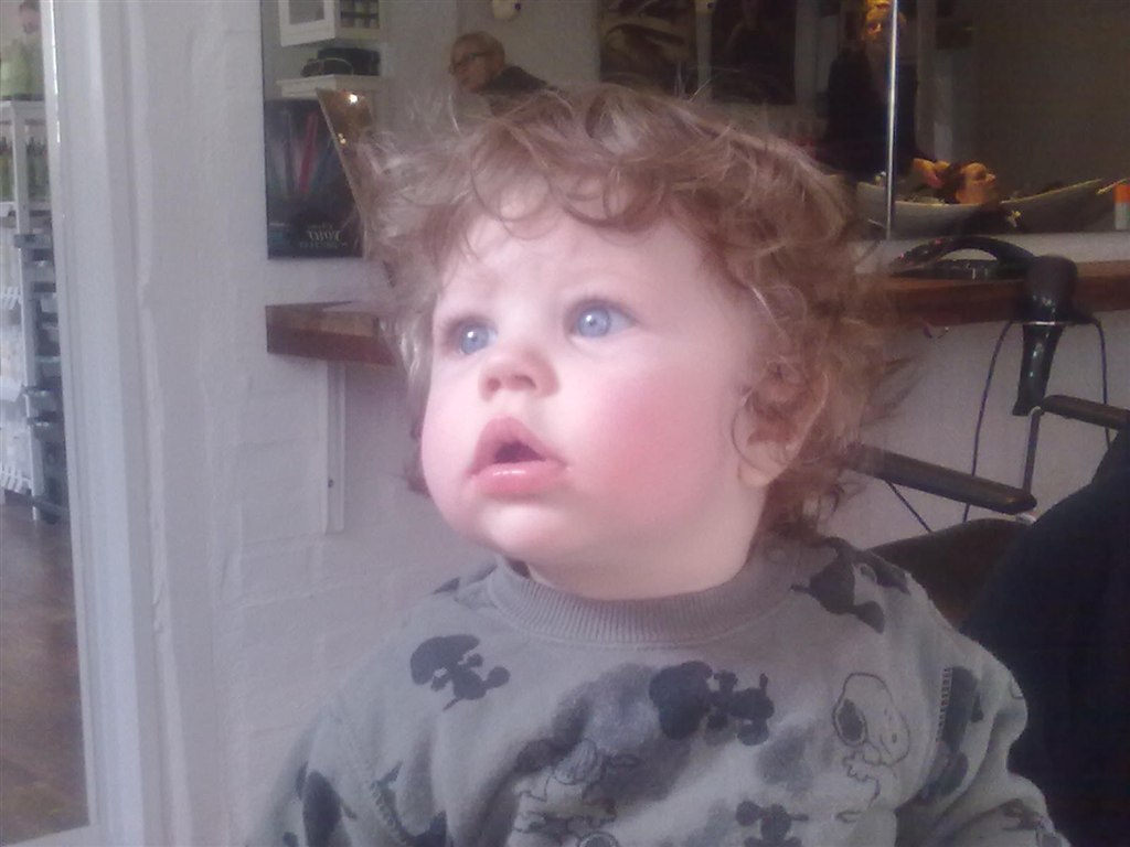 Så blev det tid til at Jonas skulle til frisør første gang, vi har udsæt det læææænge da jeg var så nervøs for at alle krøllerne skulle forsvinde. Han er blevet en rigtigt dreng nu.....