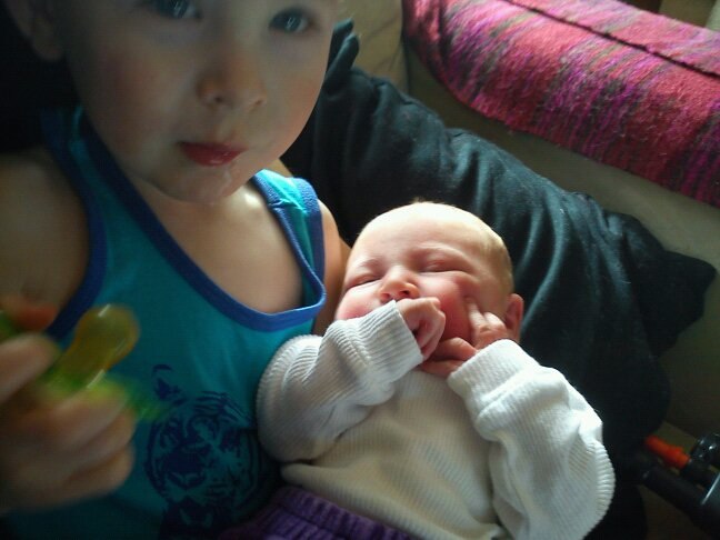 Mormilla skriver: Ja d.30/3 fødte jeg en dejlig pige på 3530g og 52cm I må høre lidt mere en anden dag når jeg er lidt mere frisk Men her er da lige et par billeder Af Nellie og den stolte stor bror Patrick