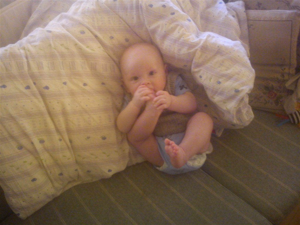 han kan møve sig frem og kan næsten komme i kravlestilling mangler bare armene lidt(;