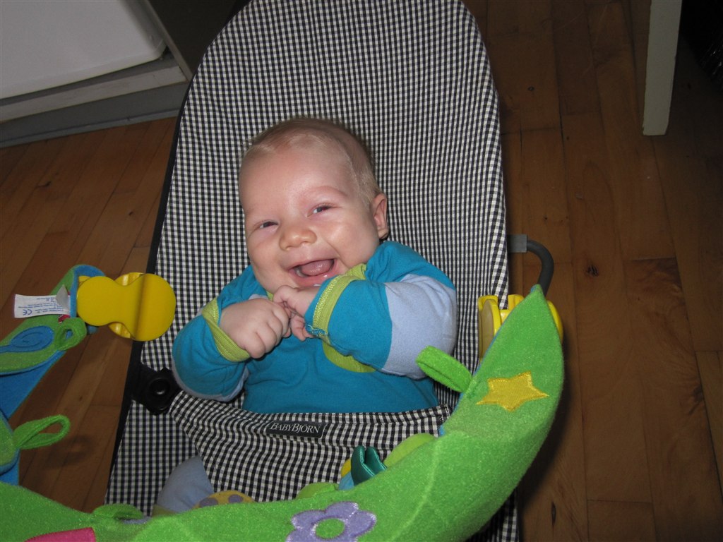 Clarasmor2010 skriver: Eej hvor er han bare skøn :-) også med det store smil, så smelter man helt! Han er da også nået af en stor dreng, min datter Clara er 5 måneder og vejer 7,5 og er 65 lang ;-)