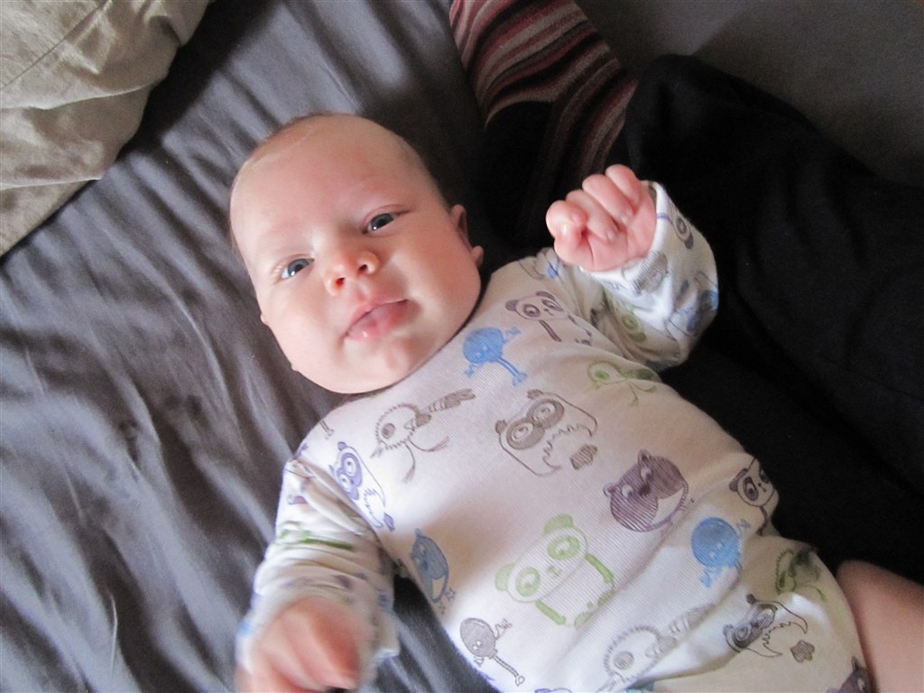 Eej hvor er han bare skøn :-) også med det store smil, så smelter man helt! Han er da også nået af en stor dreng, min datter Clara er 5 måneder og vejer 7,5 og er 65 lang ;-)