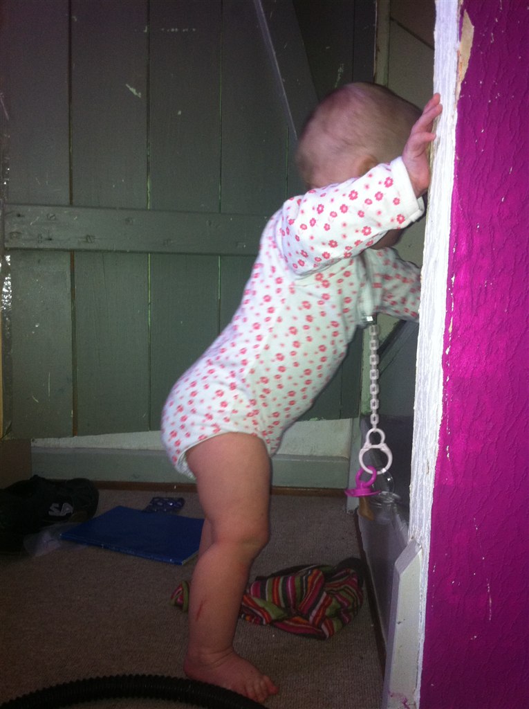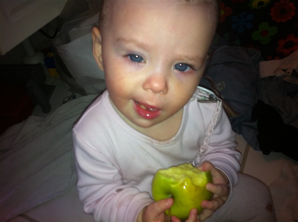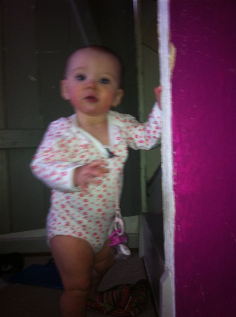Hun går, men vil stadig hellere kravle, hun snakker rigtigt meget og har mange ord