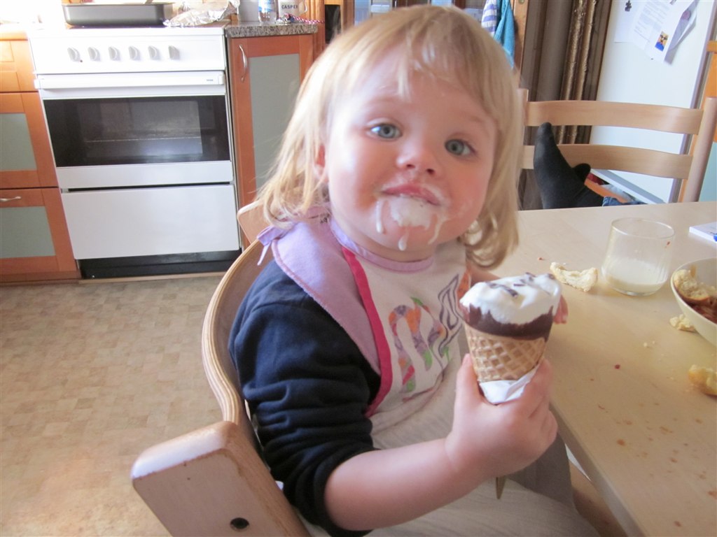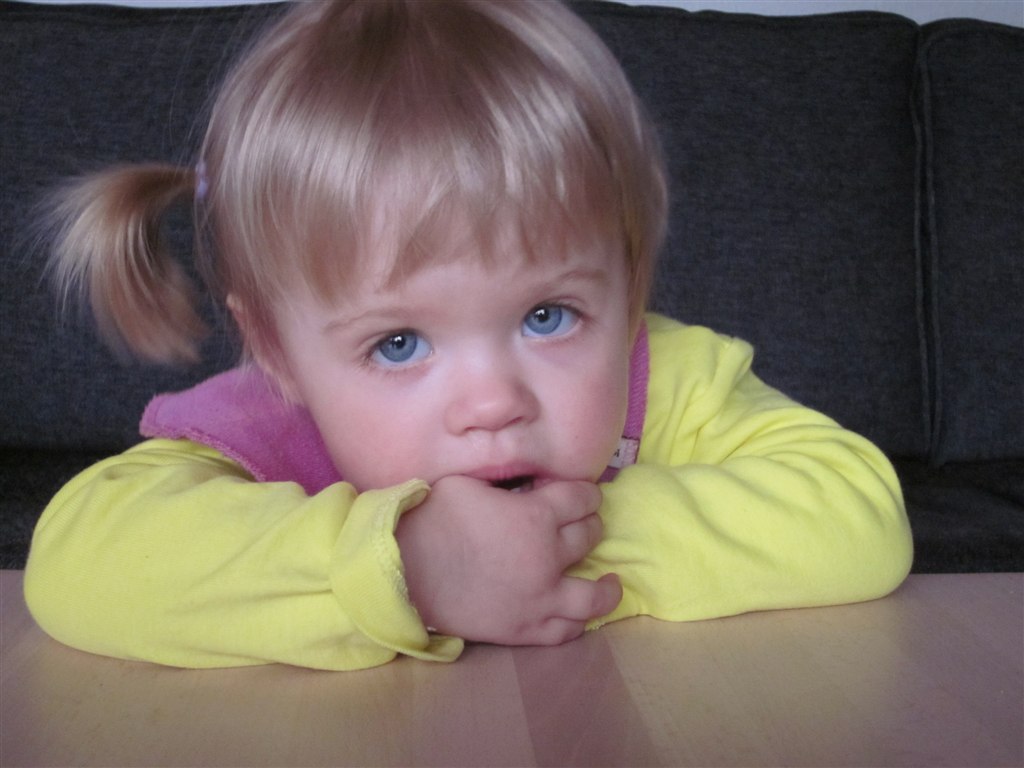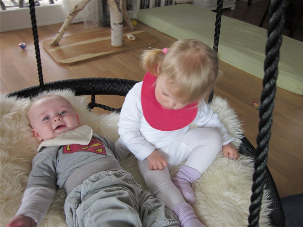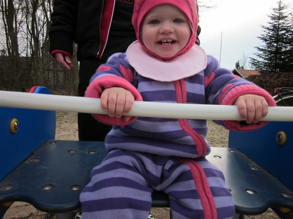 ej undskyld jeg er griner, men det ligner helt seriøst hun har sådan en præstekrave på, på gyngebillederne ;)