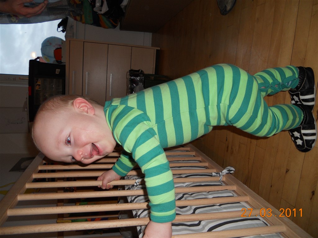 Frederik kan rejse sig, gå rundt om bordet og med sin gåvogn. Hvilket jeg syntes er smadder flot, når han er født for tidligt. Han ælsker mad og himler ikke før han har spist 4 kartofler med grønt og kød. Sover kun 1 lur i vuggestue, men vågner til gengæld kl. 6 scarp hver morgen