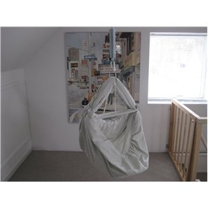 Nu har vi sat en krog i loftet til den , så den ikke hænger i vejen hele tiden (: