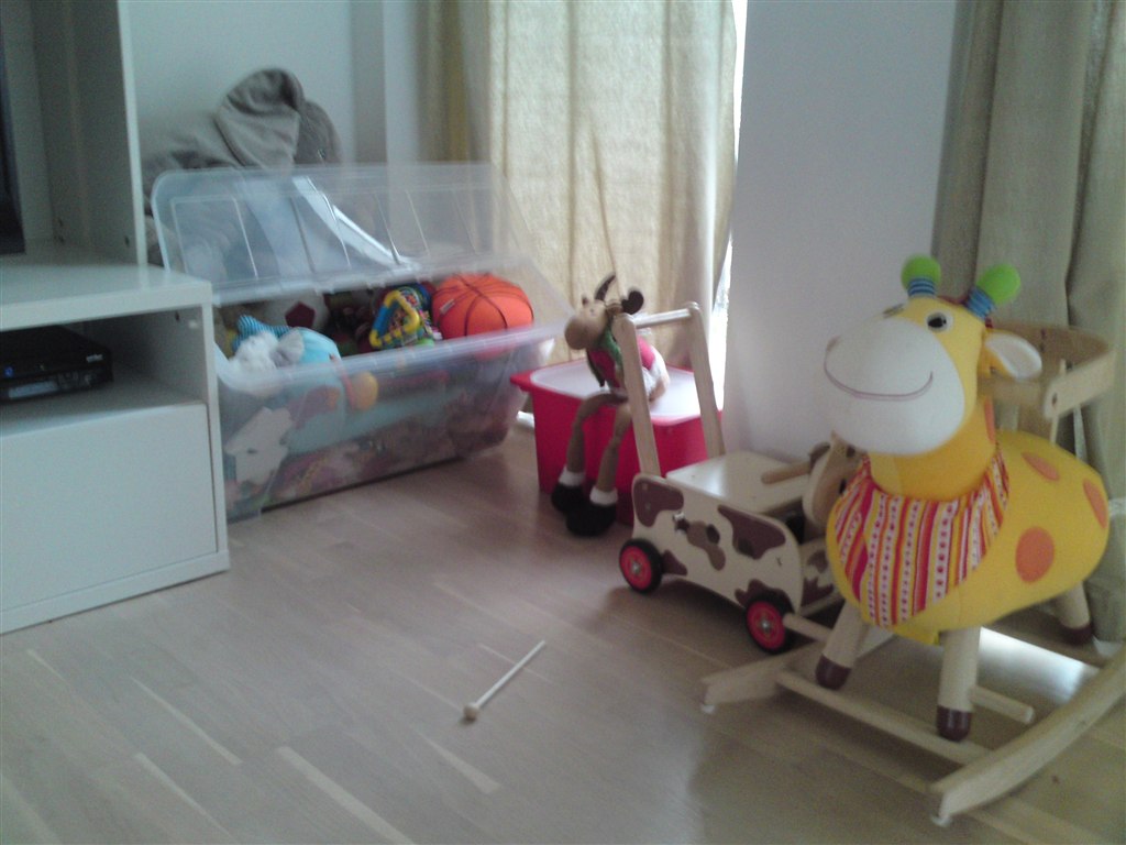 Men.. her er det altså.. håber I kan få en fornemmelse af det Normalt står de 2 lyserøde legetøjskasser i skabet når hun ikke bruger dem, men vi lege med dublo her til morgen så den ene står fremme Gyngehesten og gåvognen er nede i stuen for tiden så I får også lige et billede med af hendes legehjørne hernede