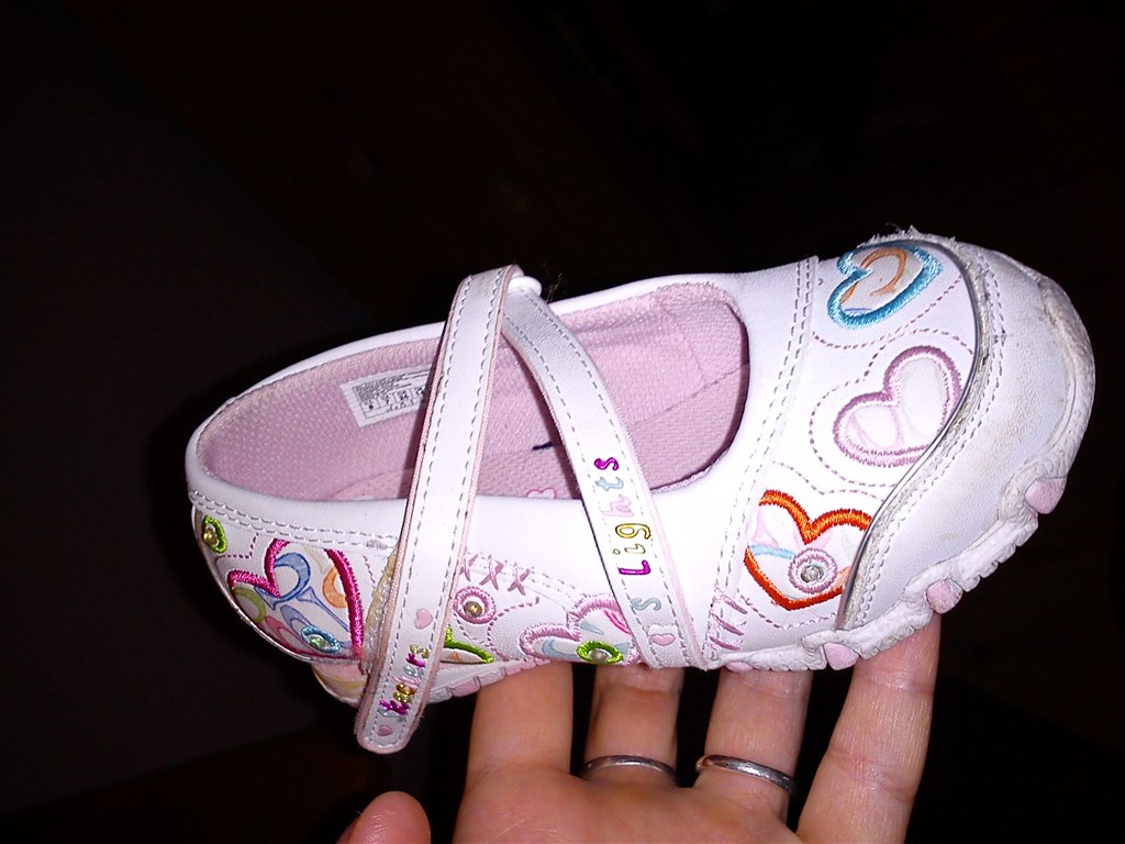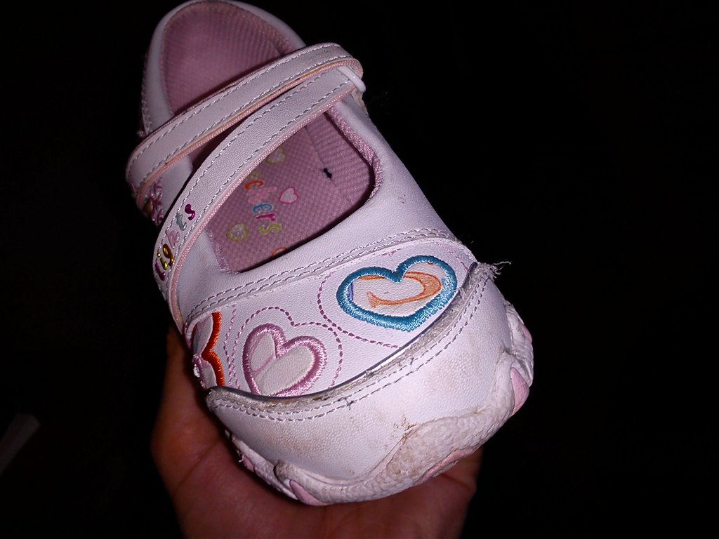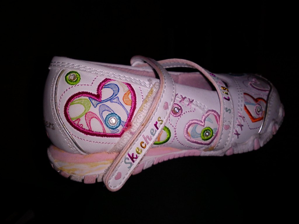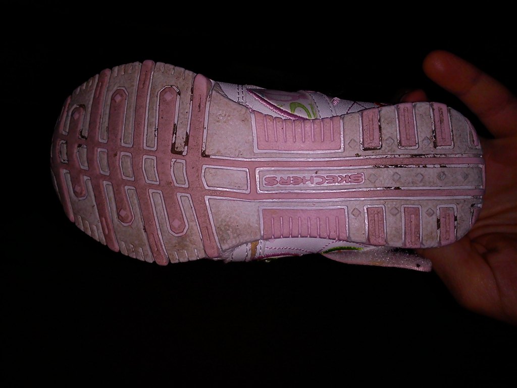 Mærket er: "Skechers". De er brugt meget lidt.. Når pigen hopper eller løber så lyser skoene..