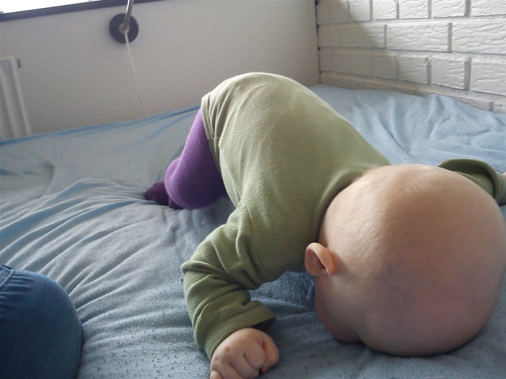 Rosa skriver: Hahaha, jeg er ikke sikker på at det billede jeg har i hovedet er rigtigt, for så får han da slidt panden i stykker - men et sjovt billede er det nu! Tillykke med at han er mobil - så er freden forbi og festen kan begynde, skulle jeg hilse og sige! Glæd jer, det er stort, og ret sjovt!!!