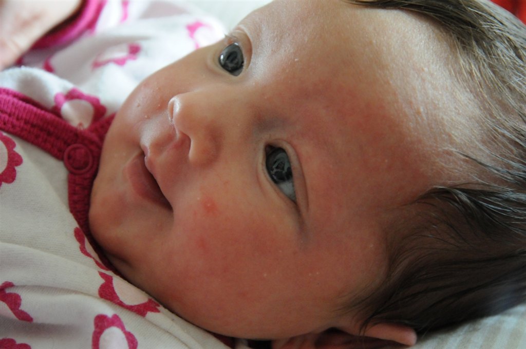 Hun er idag 2 måneder og 6 dage, vejer 4 kg og er 54 cm lang, så en lille, men smuk pige ifølge lægen..