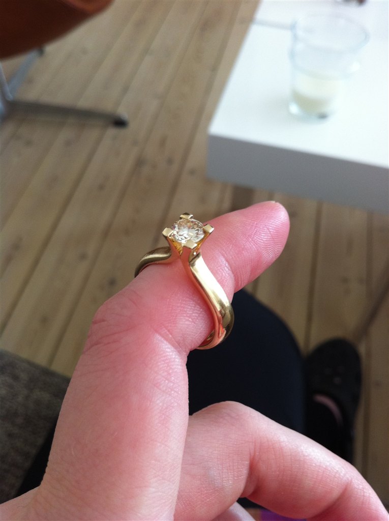 Det var først her jeg fik set ordentlig på ringen, og GUD hvor er den himmelsk smuk. Jeg spurgte til ringen, og her blev han igen enormt rørt. Han havde nemlig tænkt jeg ville spørge, og fandt derfor et brev frem som han havde skrevet forinden. Han ville gerne forklare mig det hele, men vidste at han ville have lidt svært ved at sige det hele, fordi følelserne nogle gange gør det svært at få det sagt når ens stemme skælver osv.