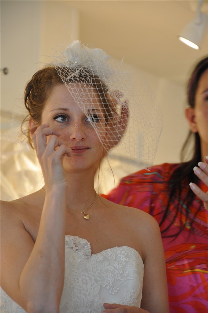 Jeg havde fået min syet hos en skrædder, men jeg skulle selv sy noget mønster på, det sad jeg så og gjorde om natten inden brylluppet, mens jeg stressede over om jeg nu nåede at blive færdig og at jeg burde ligge i min seng og sove, så jeg var frisk dagen efter.