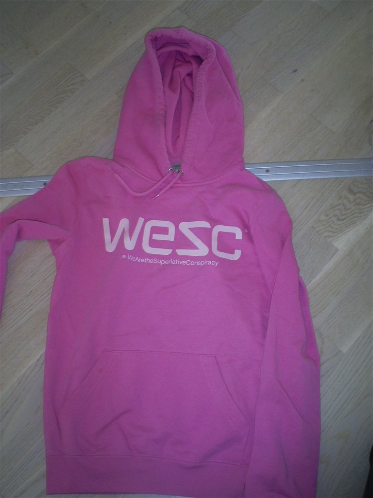 Wesc trøje, str S - næsten ikke brugt. Desværre er der kommet to pletter på bagsiden (ses ikke, da huen går nedover )