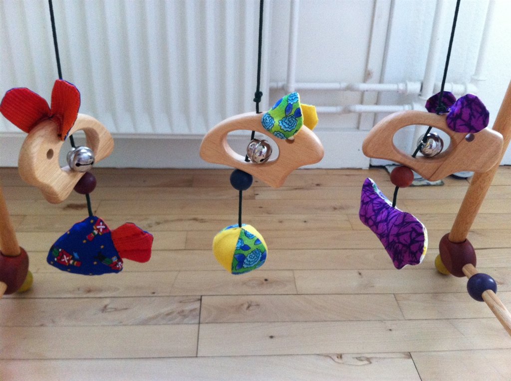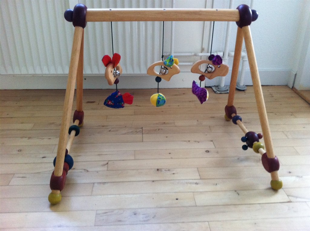 Det lækreste træstativ med fine figurer. Der er "knaselyd", rangle og "pivedyrslyd" (af mangel på bedre ord )