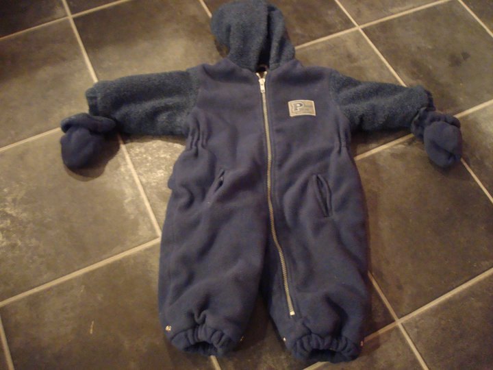 Billede:14-15. Flyverdragte sort i str ½-1½ år Brugt 2 gang i år og der er sort hætte med.