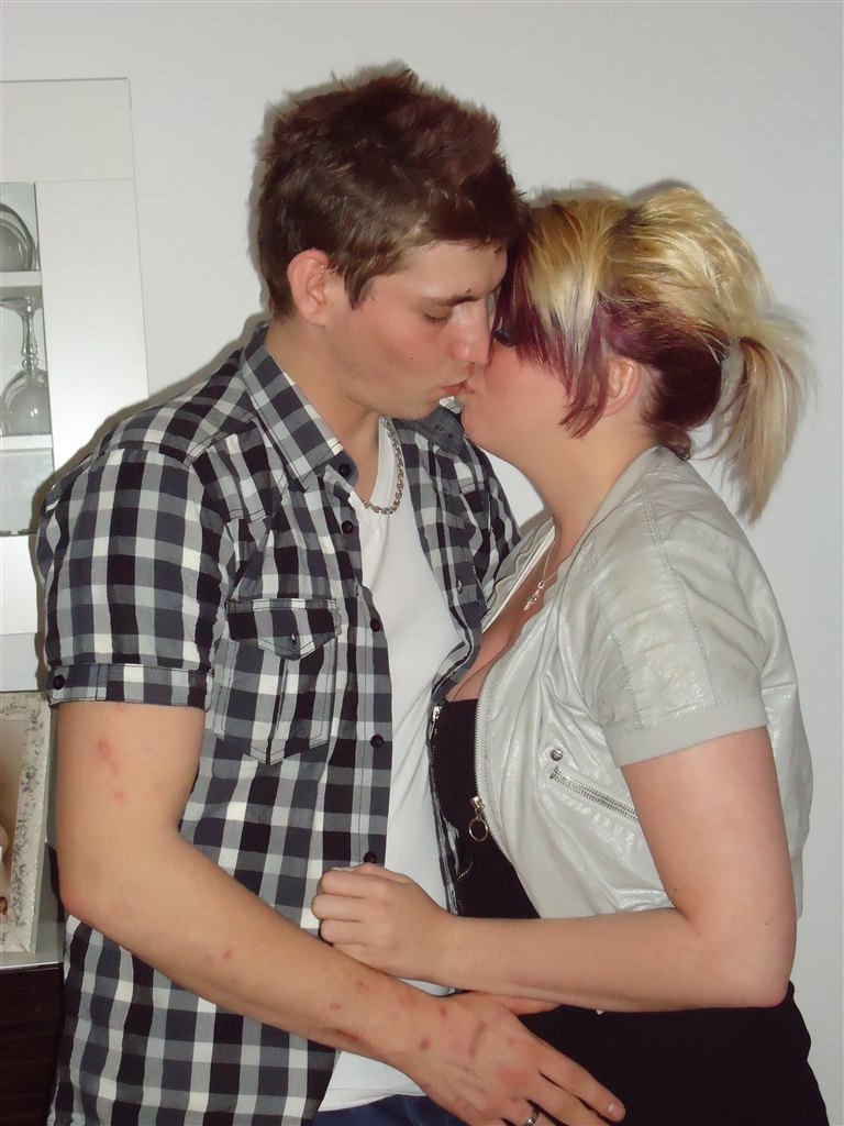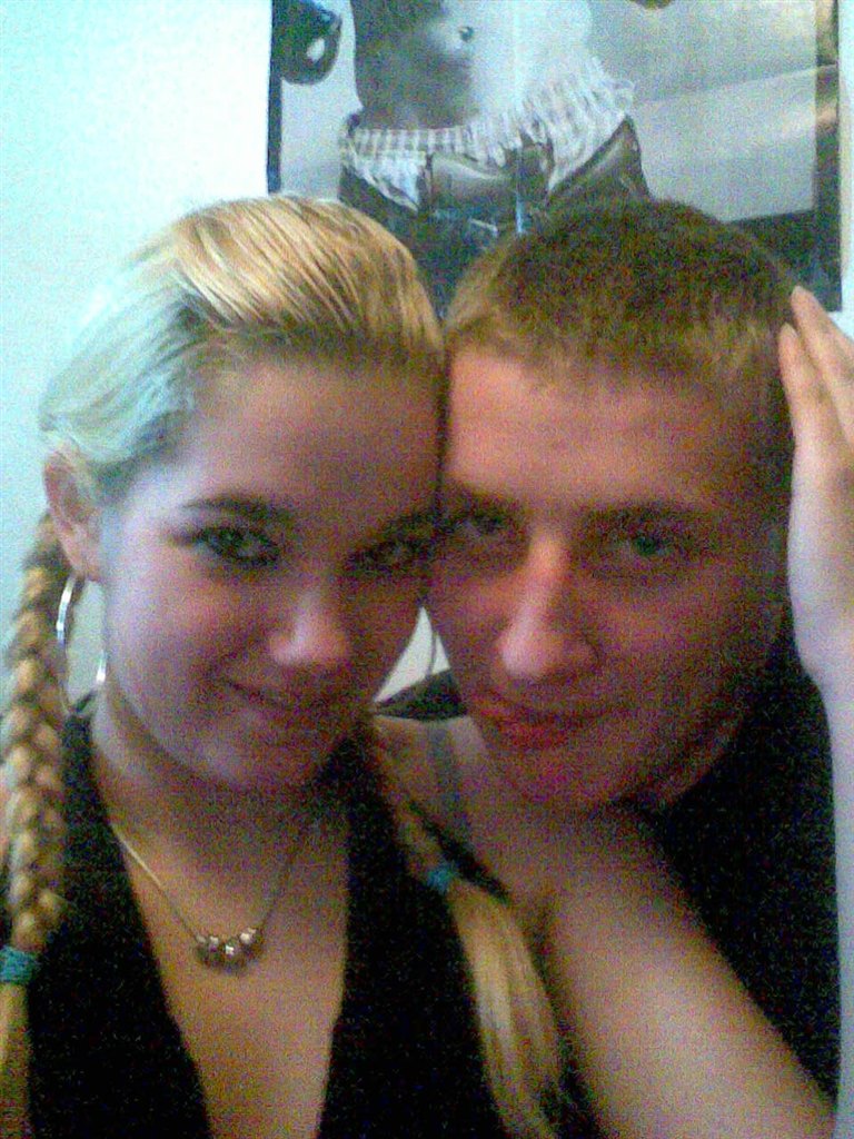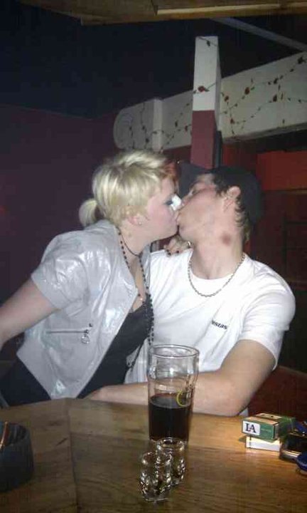 Det første billed er det første billed der er taget af mig og mand efter vi officelt blev kærster, så en skinne over min næse pga den er brækket og noget af et sugemærke på halsen af ham betyder intet