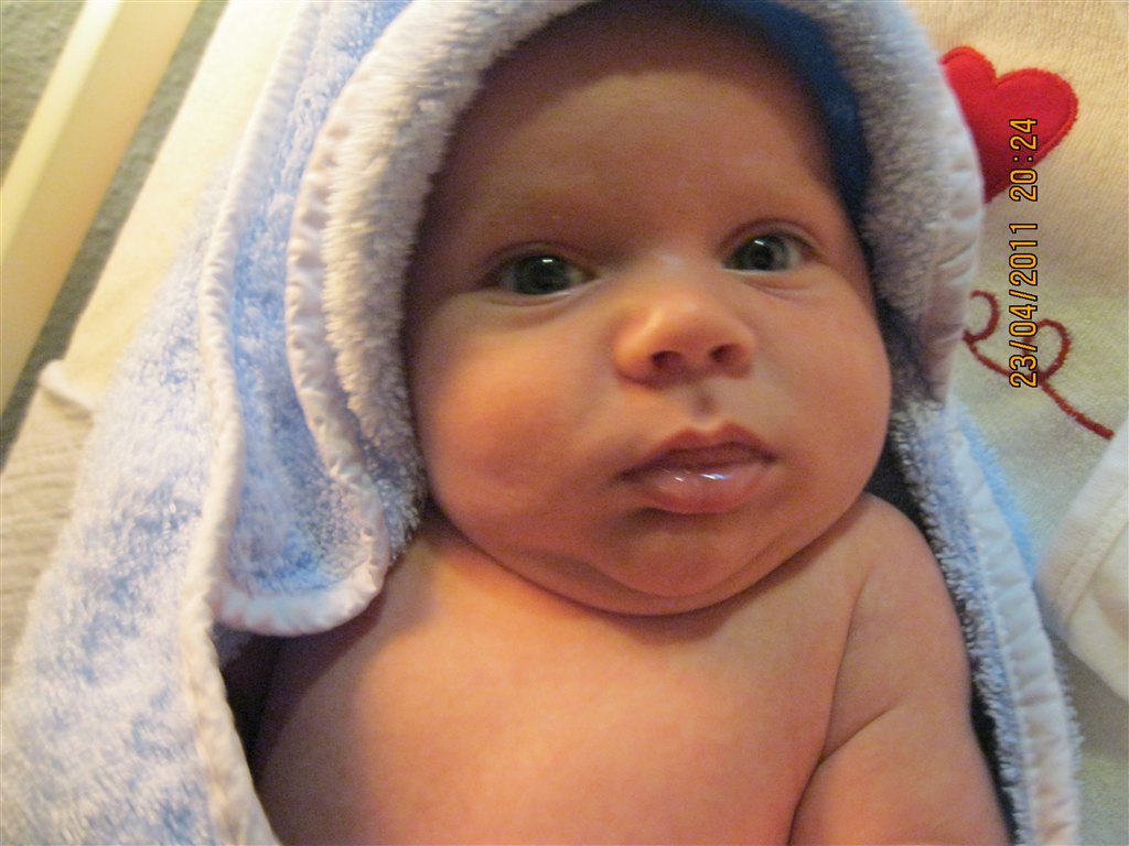 Så er min lille fis blevet 2 mdr. d. 25/4.. han er 61 lang og vejer 7,3 kg