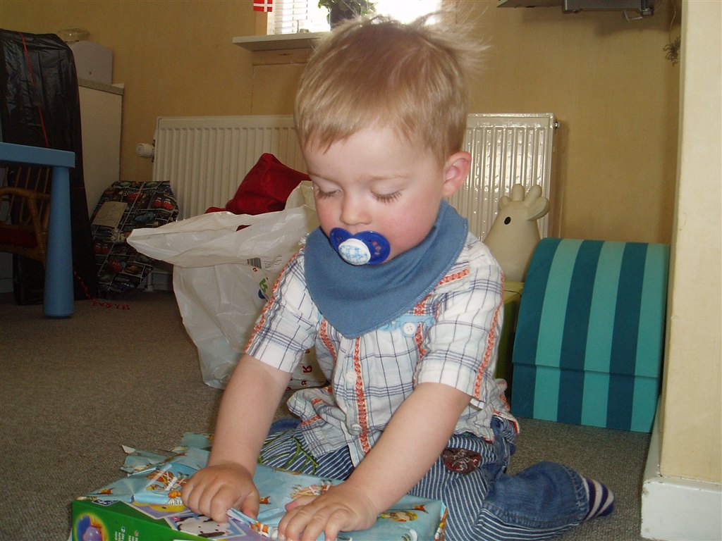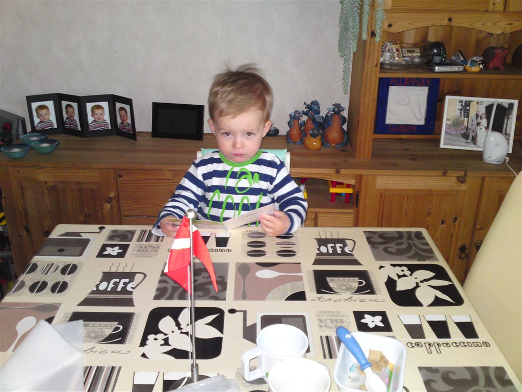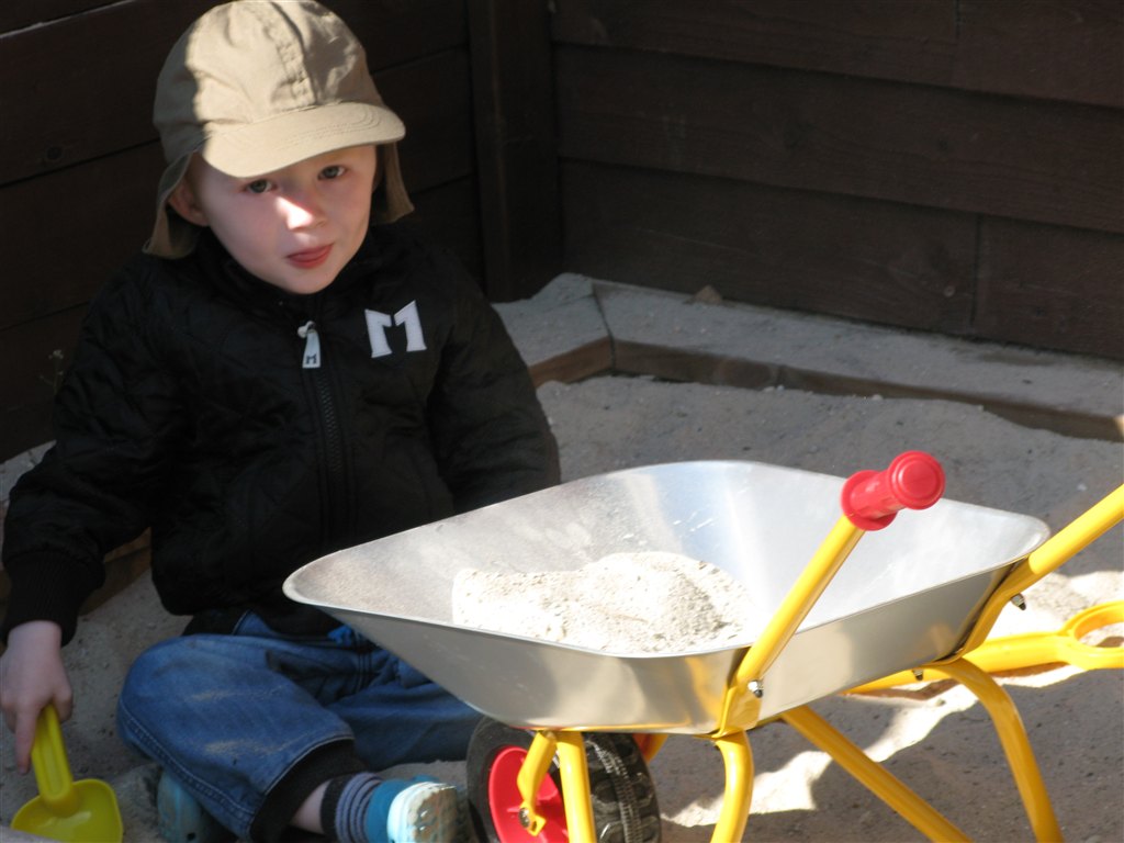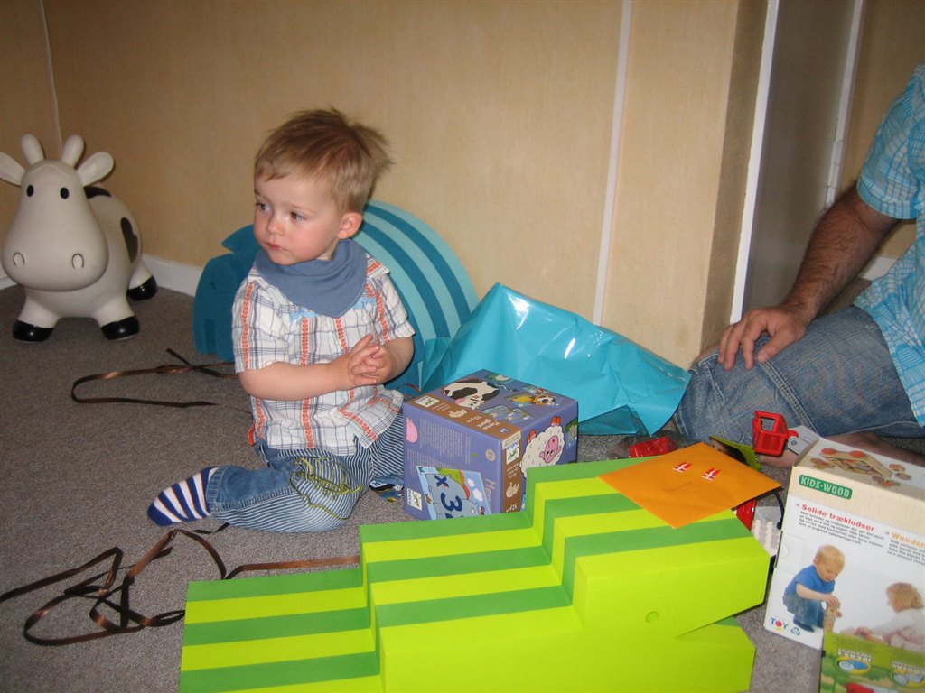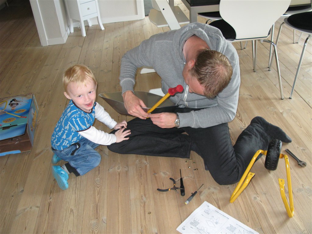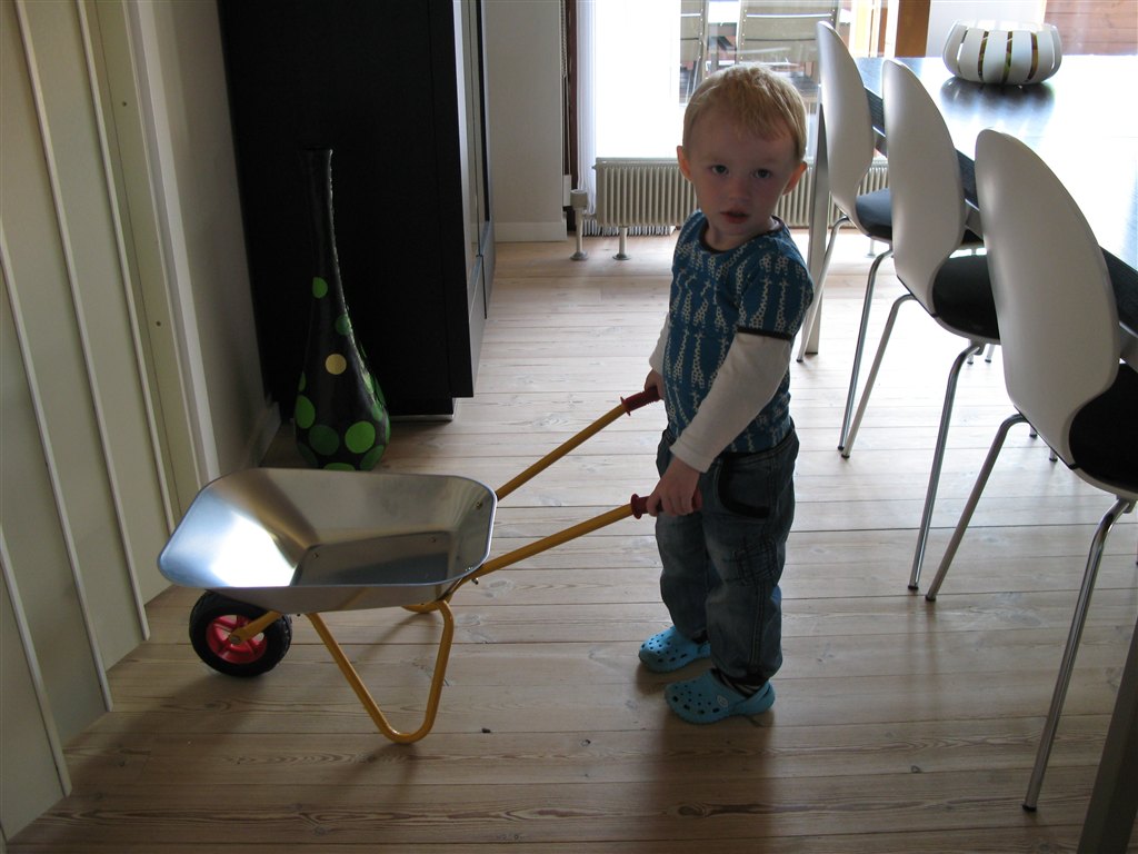 Idag fik Niklas Emil en trillebøer. Nøøøøøj han er stolt af den