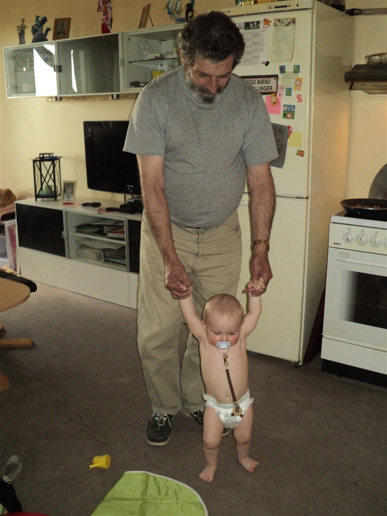 Der er også et billede af Julius som stå lidt selv, han slog på ruden og som billede viser står lidt selv når det er. Et andet hvor han går med bedstefar.