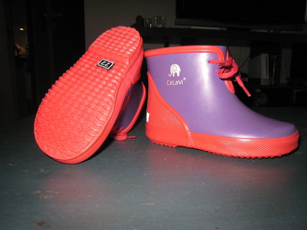 Ida. skriver: Celavi har netop korte gummistøvler - dem havde vi til Lina sidste år - og har dem til salg, men de er desværre en str. 21... De ser sådan her ud: