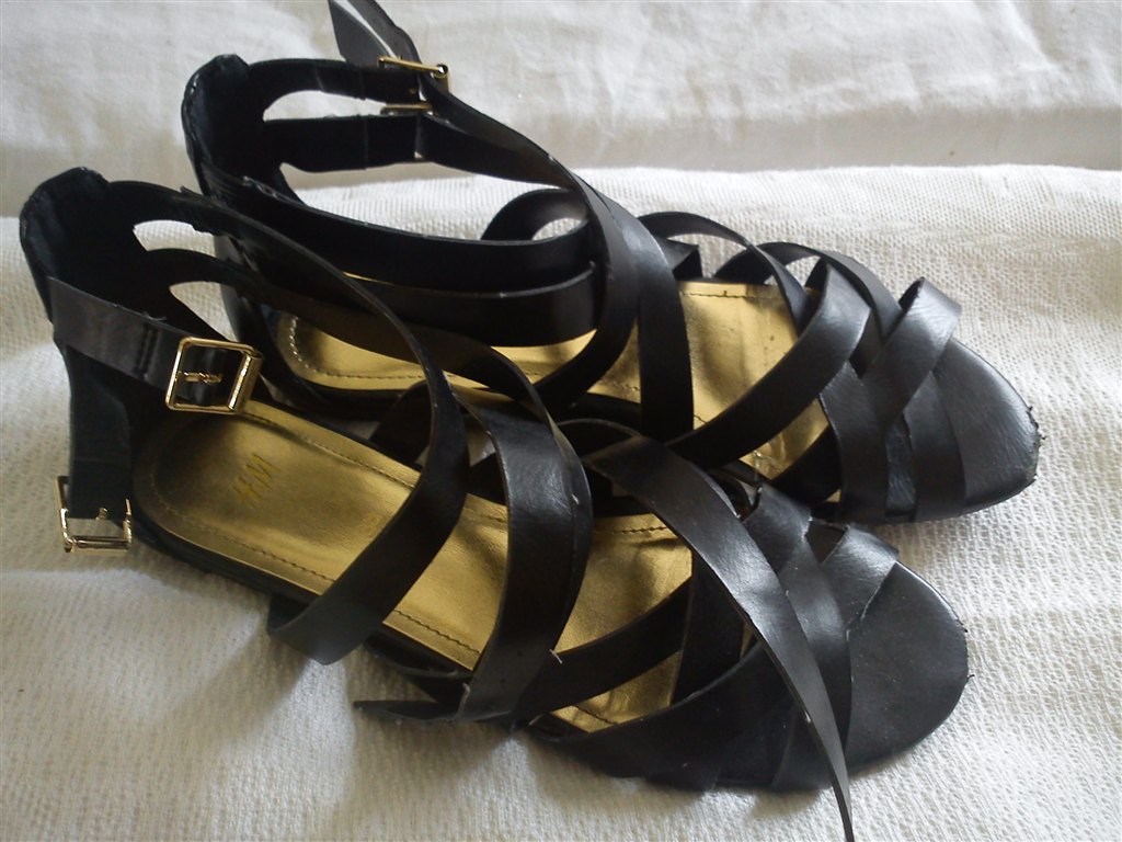- Str. 38, "H&M", sort, "fletsandal", brugt få gange. 50 kr.