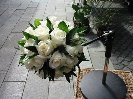Hvis det er en ruhndbunden buket i vil have så kunne i jo bare bestille en rokoko buket og ikke nævne at det er en brudebuket så kan i spare MANGE penge !!! Brystbuketterne kan i sagtens lave selv i kan vælge en eller to af de blomster der er i buketten og lidt grønt det kan i jo bare købe vede siden af. For at binde bryst buketten sammen køber i bare noget sportstape det minder meget om det de bruger i blomster forretningen ( bortset fra at det er hvis men det kan man klare med en tusch eller silkebånd) og så en sikkerheds nål.