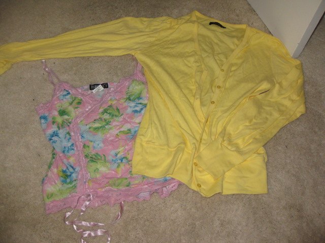 Billede 14: lyserød top str S. gul cardigan str S 20 kr pr stk