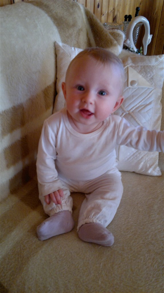 Hårfarve: lys hårfarve- 6 mdr: lys hårfarve og begyndt at få krøller