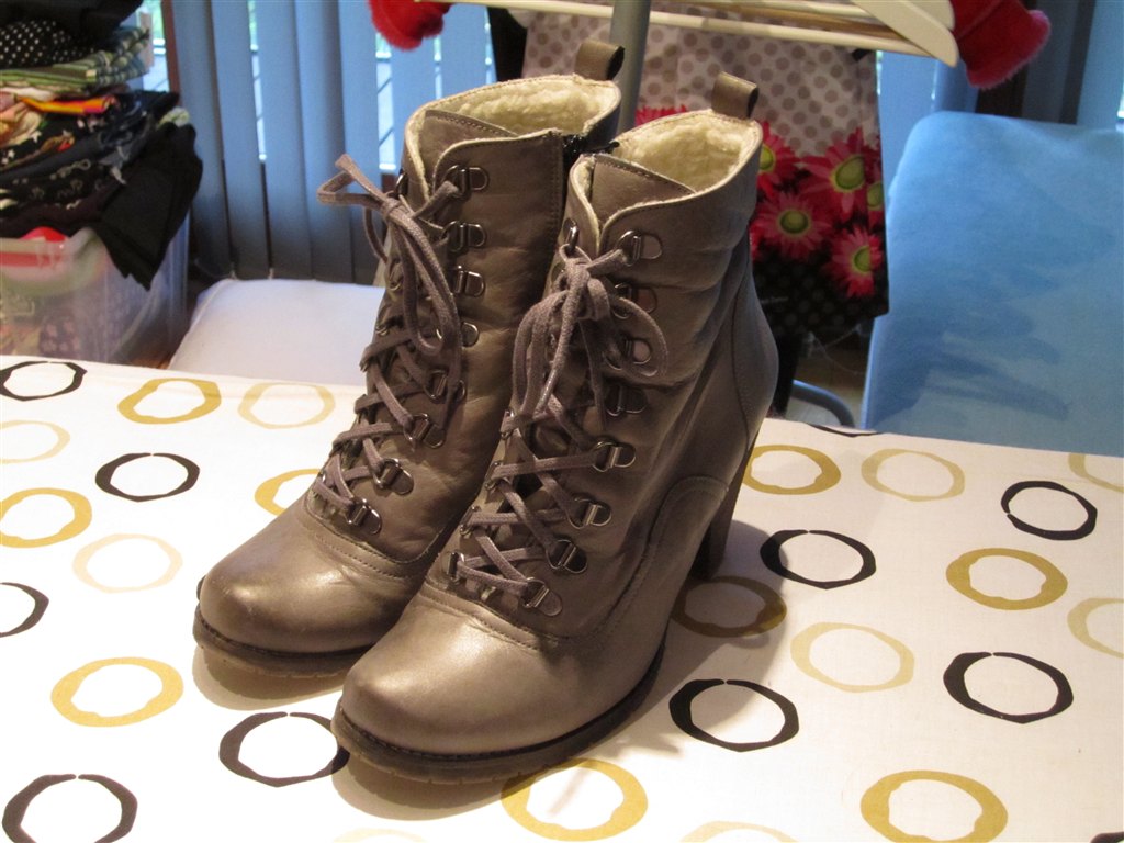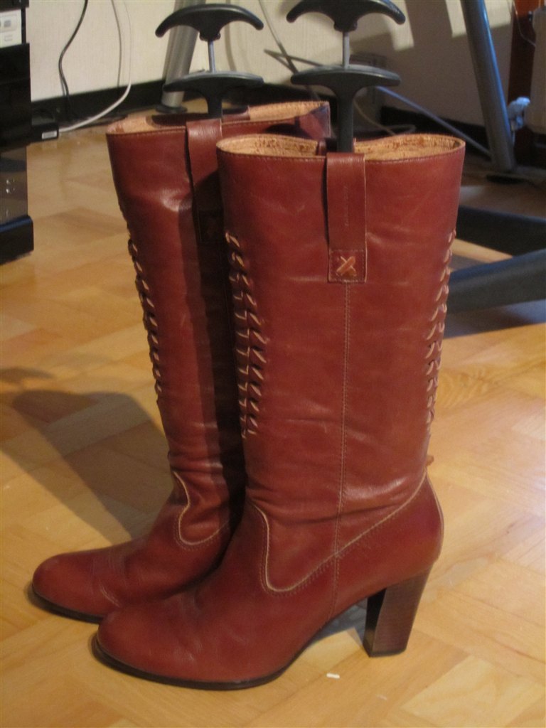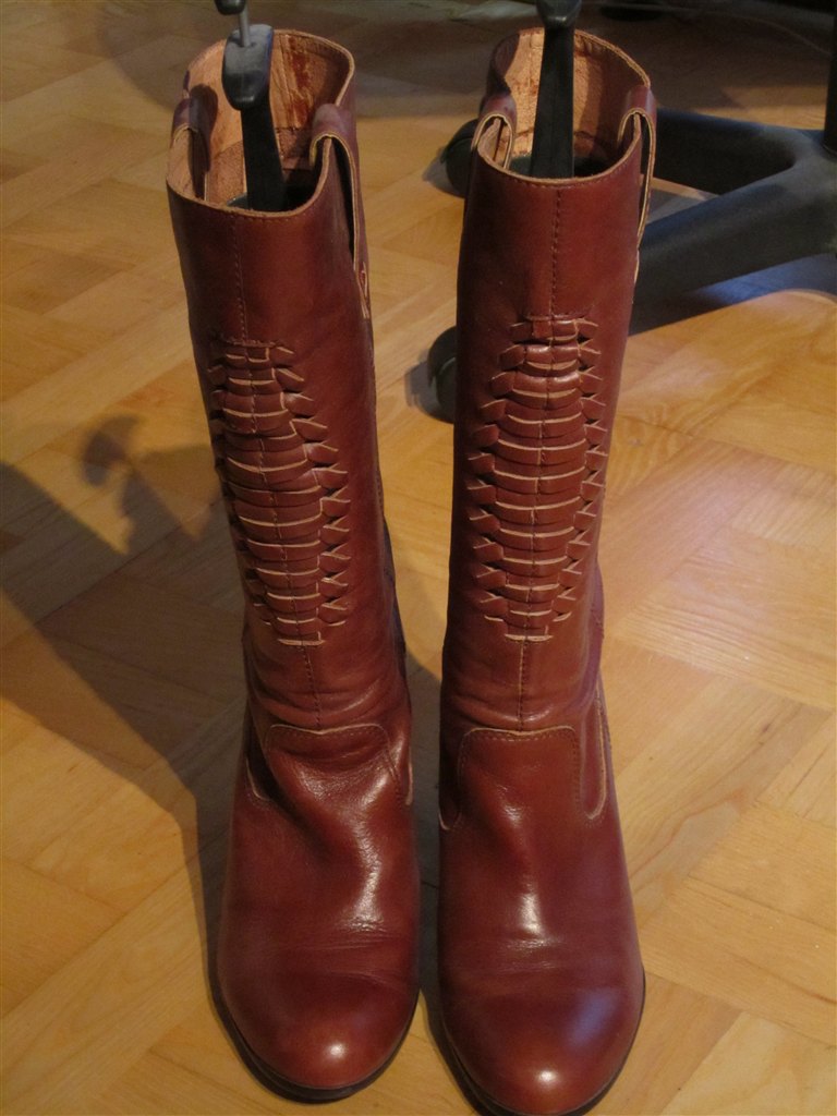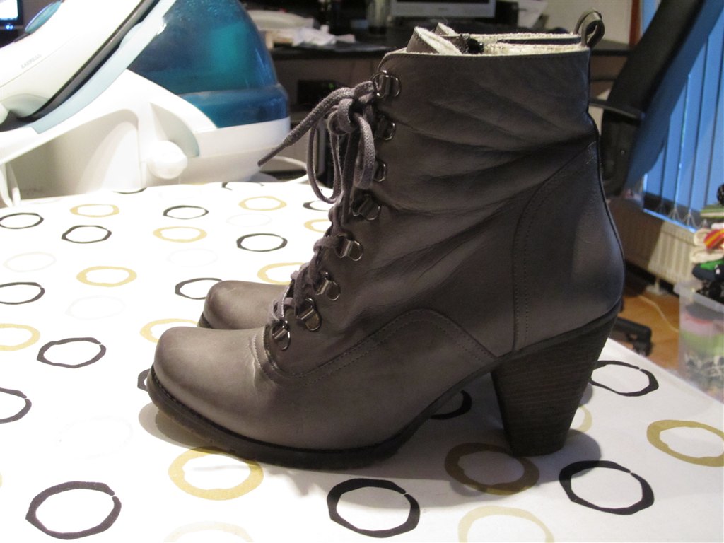 Jeg må konstatere at efter 2 graviditeter lige i rap, kan mit bækken ikke kan holde til at gå i andet end lave hæle så derfor sælges de her fede sko & støvler.