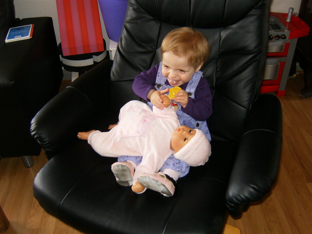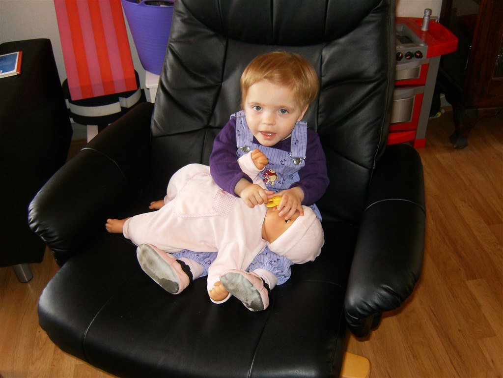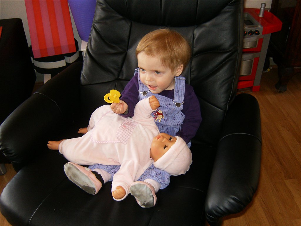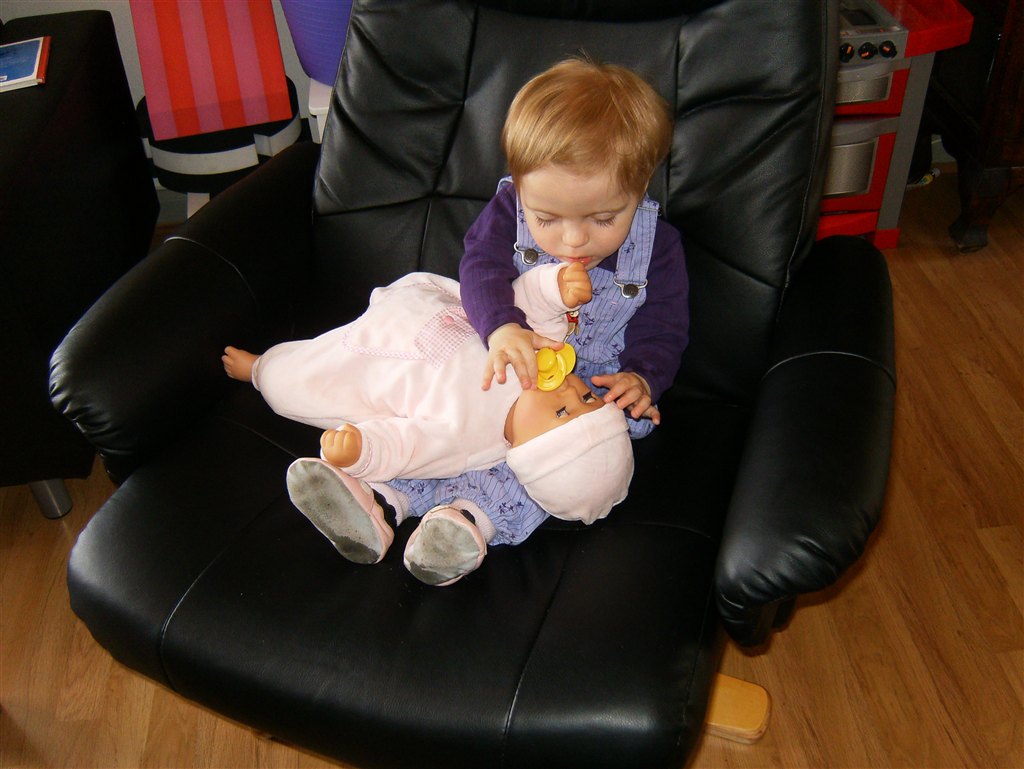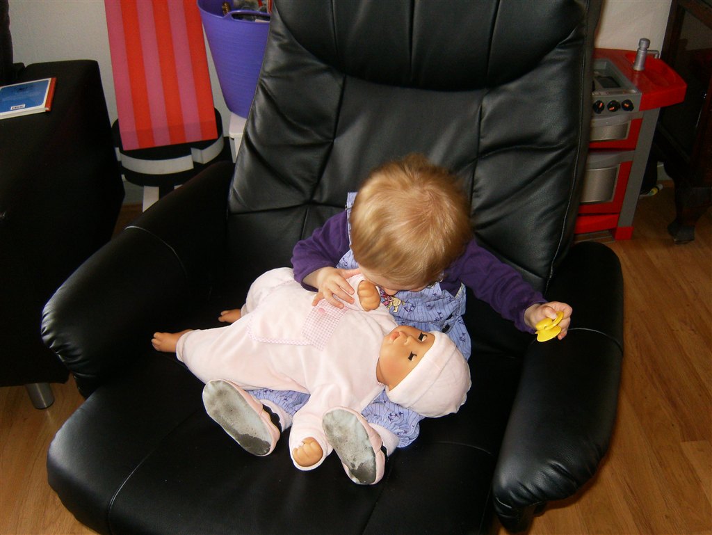 Og jeg elsker det! Hun har aldrig været interesseret i at kramme eller putte, men jeg skal lige love for at det er vendt Både os, men også dukken mærker det! Kys, kram, kilden, aen osv får dukken og hun kalder den baby Billederne taler for sig selv..Har i billeder af jeres børn der er kærlige, så smid dem endelig op