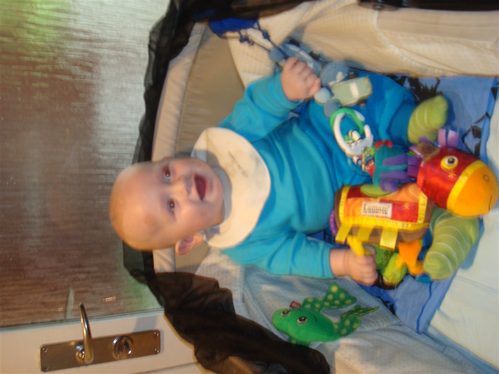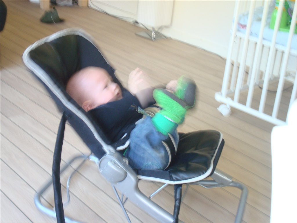 Dog er dagen et helved mht. til putning - han tager små lurer på 20min 5 gange om dagen..!! De er dog meget ureglmæssige fordelt..!! Han sover stadig i sin vugge hos mig, men overvejer stærkt eftersom han nu i snart 3 uger har sovet igennem, at rykke ham ind på hans eget værelse..