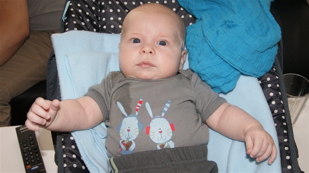 puha tiden flyver afsted, - Men alt går bare rigtig godt, Emil snakker rigtig rigtig meget, (må han have fra sin mor) ;P og holder næsten hovdet selv nu, han rulle fra mave til ryg , Ja som sagt tiden flyver bare afsted, kan jo dårlig selv følge med :/ <3 sidst han blev lagt på vægten var det 6kg min store store dreng