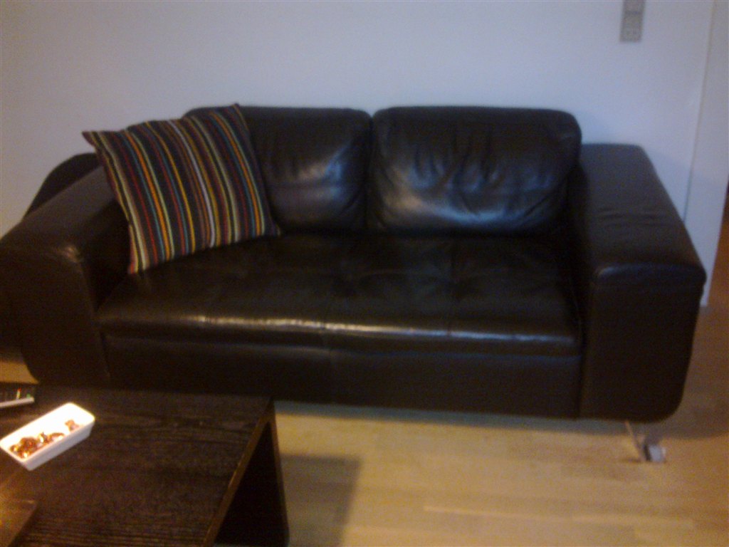 2 og 3 pers. sort læder sofa sælges pga. pladsmangel. 3 år gammelt, ikke ryger hjem, ingen huller eller ridser, købt i Idé møbler.